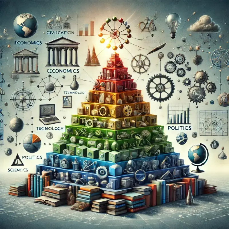 To manifest our vision, we must first understand the hierarchy that influences civilization's progress: economics, technology, politics, society, culture, religion, and science. At the foundation of this hierarchy is education, the cornerstone that empowers individuals to navigate and contribute to these domains effectively.